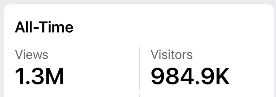 1 Million Visitors and Over a Million Views–Thank You!